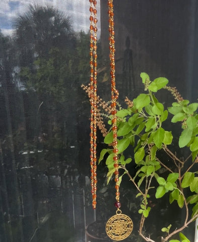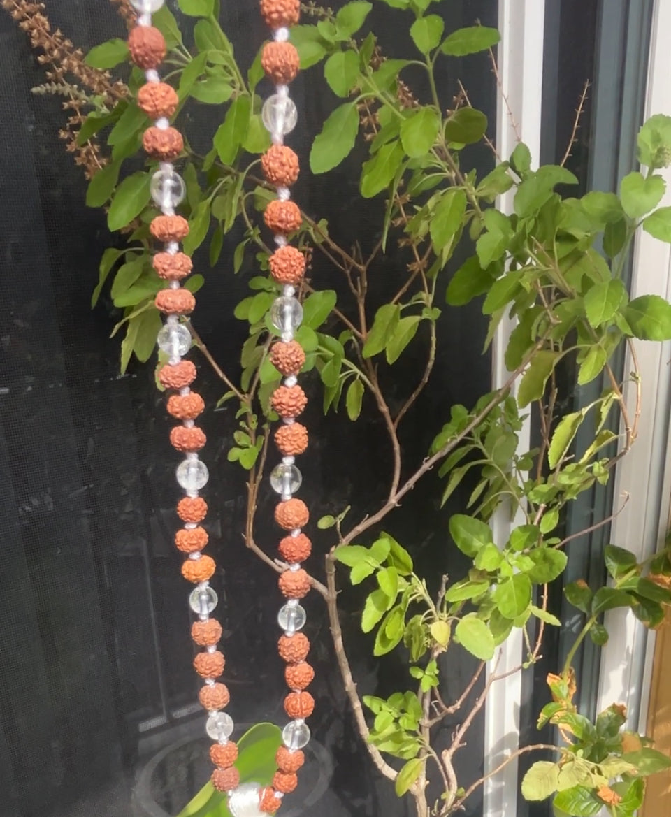 Malas are sacred jewelry. Infused with the energy of different semi-precious stones and Rudrakshas, they produce a unique energy when worn. These malas are made by a family of jewelers who live in the holy city of Rishikesh, India. Each mala is blessed and energized with the Gayatri mantra.